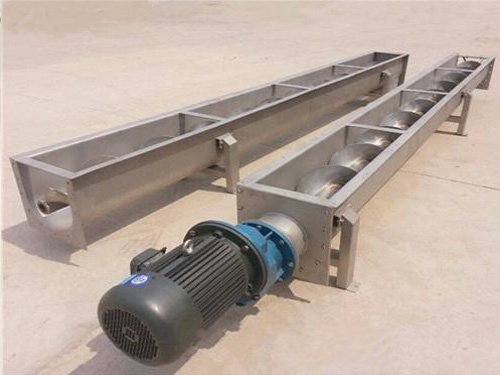一般情況下,出廠總裝時將螺旋輸送機(jī)中間節(jié)按長度長短依次排列,長的中間節(jié)靠近頭節(jié),相同長度的中間節(jié)則挨在一起,如果有特殊要求,則在訂貨時給出排列順序。在螺旋輸送機(jī)頭節(jié)內(nèi)裝有支推軸承承受軸向力,在中間節(jié)和尾節(jié)內(nèi)裝有用軸承支承螺旋軸,此外,在螺旋輸送機(jī)尾節(jié)內(nèi)還裝有可軸向移動的徑向軸承以補償螺旋軸長度的誤差和適應(yīng)溫度的變化。螺旋輸送機(jī)螺旋面的形式有實體螺旋(S制法)和帶式螺旋(D制法)兩種。各螺旋軸之間采用法蘭式聯(lián)接, 保證了聯(lián)接軸的互換性,便于維修。螺旋輸送機(jī)機(jī)蓋為瓦片式并用蓋扣夾緊在機(jī)殼上,若需改進(jìn)密封性能,用戶可自行在機(jī)蓋與機(jī)殼間加防水粗帆布。 螺旋輸送機(jī)進(jìn)、出料裝置有進(jìn)料口,方型出料口,手推式出料口,齒條式出料口四種,由用戶在使用現(xiàn)場在機(jī)體上開口焊接。
